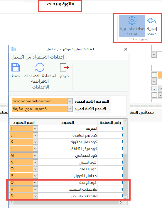 اضافة الوحدة والملاحظات الى الاستيراد المتعدد