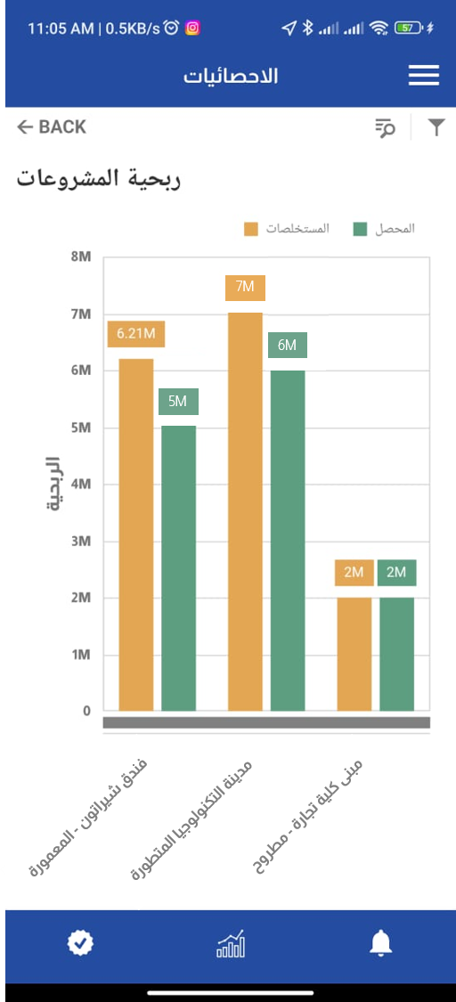 و يمكن استعراض مجموعة من تقارير الداش بورد التى تخدم قطاع المقاولات مثل :