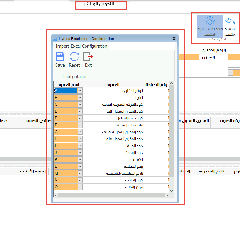 لذلك تم تطوير هذه الجزئية بإضافة الاستيراد المتعدد الى شاشة التحويل المباشر بين المخازن لاستيراد بيانات شاشة التحويل مثل الاصناف المطلوب تحويلها وكمياتها وكل من المخزن المحول منه والمخزن المحول اليه ونوع الصرف والاضافة