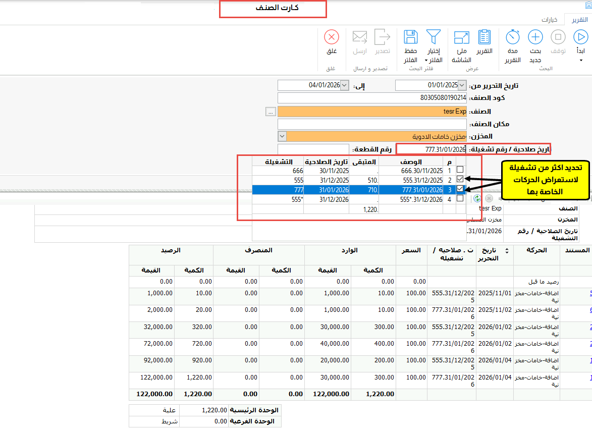 امكانية استعراض تقرير كارت الصنف على اكثر من باتش