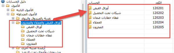 يمكن تقسيمها الي ( اصول ثابتة - اصول متداولة ) المستوي الثاني بعد الاصول (أنواع الأصول في شجرة الحسابات)