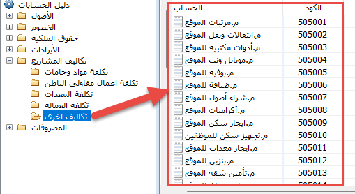 - يمكن تقسيمها الي اكثر من مستوى ثالث حسب نوع المصروف الذي تم صرفه مثل ( م.مرتبات الموقع - م.انتقالات ونقل الموقع - م.ادوات مكتبيه الموقع -..الخ)