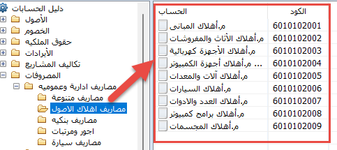 - ويتم وضع حساب الاصل الثابت ومعه حساب مجمع الاهلاك الخاص به لامكانية الحصول على صافي قيمة الاصل بعد طرح مجمع الاهلاك عند استعراض التقارير المالية